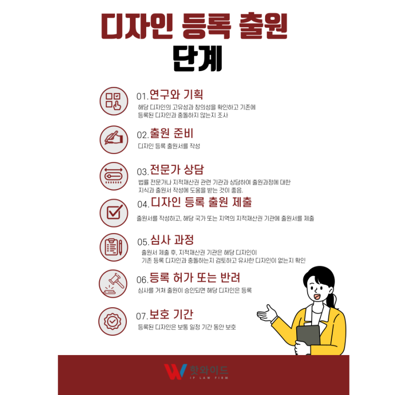 안녕하세요. 특허법인/법무법인/세무회계 테헤란. 디자인은 시각적으로 가장 자극을 주는 부분으로 모든 제품의 필수적인 부분이 되었습니다. 많은 사람들이 디자인을 만들 때 가장 큰 고민은 아마도 도난과 복제의 문제일 것입니다. 디자인은 가장 먼저 눈에 보이는 부분이기 때문에 침해상황이 가장 흔하므로 이에 대한 대비와 대응이 필요합니다. 오늘은 귀하의 디자인을 보호하기 위한 디자인등록 및 디자인출원서 작성요령에 대해 알려드리는 시간을 가지려고 합니다. 저희 테헤란 사무소에는 약 15년 경력의 변리사들이 직접 1:1 상담을 제공하고 있습니다. 또한 전문적인 컨설팅과 피드백, 체계적인 디렉션을 지원해 드립니다. 디자인등록건수 3,163건을 보유하고 있으며, 수많은 사업사례를 바탕으로 원활하게 진행되고 있습니다. 상담은 무료이며, 진행중이니 궁금하신 점이 있으시면 언제든지 편하게 연락주세요.