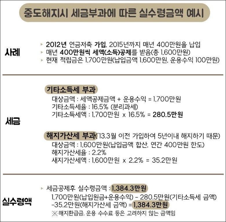 연금저축 중도해지시 기타소득세 16.5% 부담