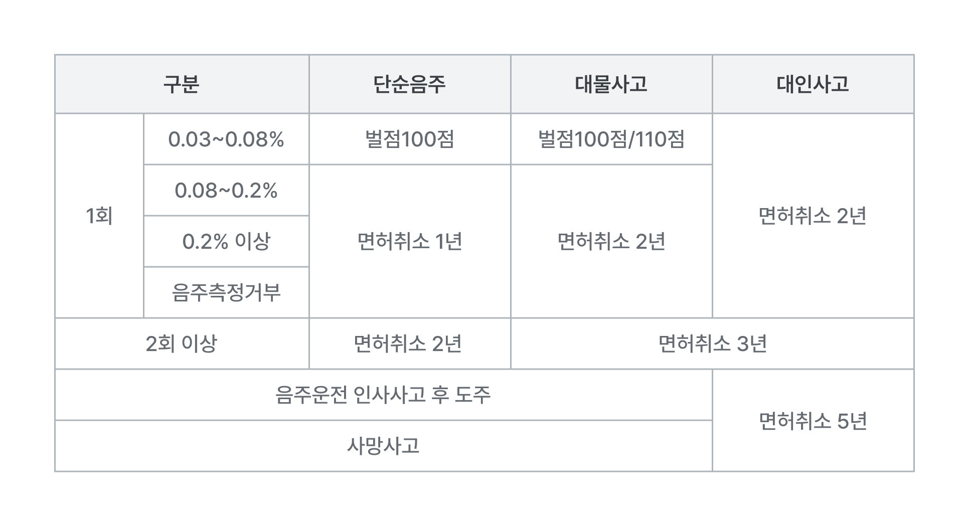 음주운전 처벌은 혈중알코올농도 0.03부터 시작된다.