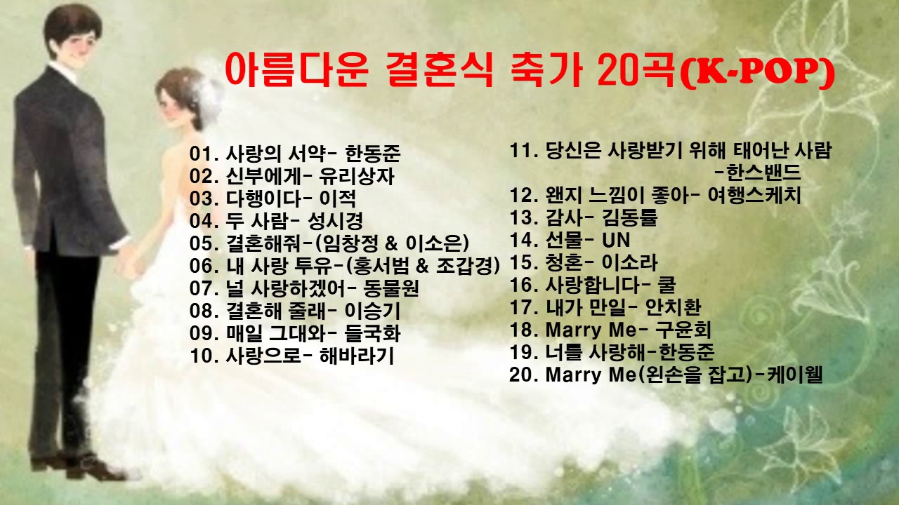 그만큼 신랑신부의 미래에 대한 응원을 표현하는 노래가 있다는 것은 얼마나 소중한 일인가. 이보다 더 특별할 수 없었으면 하는 하루가 되기 때문입니다. 이제부터 웨딩송을 추천해드리고 하나씩 소개하겠습니다.