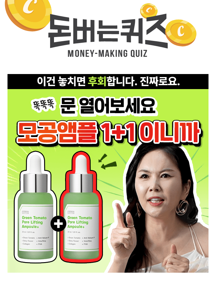 안녕하세요 자연의 감성을 담아내는 이야기꾼이자 조경지기입니다. 캐시워크 앱 – 돈버는 퀴즈 정답 (성분편집 그린 토마토 포어 앰플 더블 모공 개선/어두운 모공 케어. 특허받은 데이지 꽃 추출물이 어두운 피부를 밝게 만들어줍니다. (개선에 도움) 캐시워크 돈버는 퀴즈 문제는