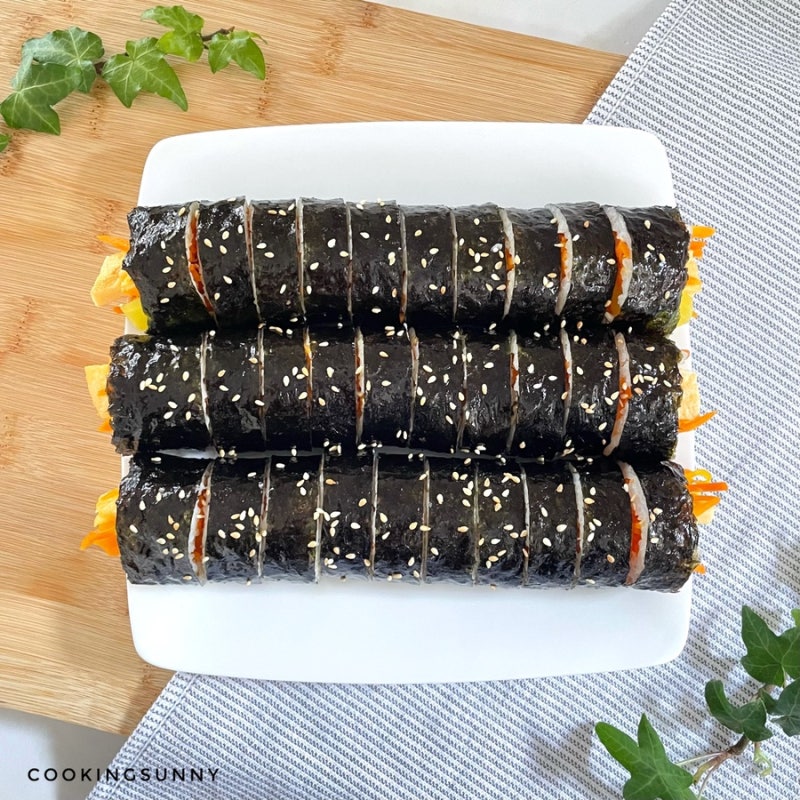 썰어놓은 어묵을 실온에 잠시 놔두었더니 살짝 녹더라구요. 얇게 썰어준 뒤 뜨거운 물을 한 번 부어 녹인 뒤 찬물에 한 번 헹궈줬어요. 쫄깃쫄깃하고 맛있었어요. 청양고추 1개만 잘게 썰어 준비했어요. 적당히 매콤하고 맛있었어요. 좀 더 매콤한 김밥을 원하시면 잘게 썬 김밥 2개 정도를 준비해주세요. 그리고 김밥과 잘 어울리도록 얇게 썬 단무지 2개도 준비합니다. 양념과 함께 볶아주세요. 프라이팬에 물 2큰술, 맛술 1큰술, 진간장 2큰술, 올리고당 1.5큰술을 넣어줍니다. 잘 섞다. *올리고당은 설탕, 물엿 등으로 대체 가능하며, 단맛은 입맛에 맞게 조절하시면 됩니다. 양념이 끓기 시작하면 썰어둔 어묵을 넣고 볶아주세요. 양념을 넣고 1분 정도 볶은 후, 다진 청양고추를 넣고 1분 정도 볶습니다. 볶았어요. 하나 집어 먹어보니 짭조름하고 달콤해서 밥반찬으로도 맛있을 것 같았어요. 청양고추를 넣으면 매콤함이 더해져서 김밥에 비벼먹으면 이보다 더 맛있을 수가 없습니다. 볶은 어묵을 그릇에 담고 식혀주세요. 양념밥 1.5그릇을 준비했어요. 미리 떠서 맛소금, 참기름, 통깨 약간을 넣어 잘 섞어 준비합니다. 해초를 네 조각으로 나눕니다. 미역을 두 번 접은 후 가장자리를 누르고 펼쳐서 4등분으로 잘라줍니다. 겹치지 않게 가지런히 배열하세요. 작은 김밥 포장지를 적당량 올려주세요. 그 위에 어묵과 단무지를 가지런히 올려주세요. 작은 김밥이므로 너무 크지 않게 한입에 쏙 들어가는 크기로 돌돌 말아주세요. 오일 브러쉬를 이용해 참기름을 듬뿍 바르고 통깨를 뿌려 마무리합니다. 모든 것을 준비할 필요는 없습니다! 어묵, 단무지, 청양고추 3가지 재료만 준비하여 간단한 어묵과 청양고추김밥을 만들어보세요. 하나하나 자를 필요 없이 돌돌 말아 하나씩 집어 먹으면 됩니다. 가장 간단하고 맛있습니다. 저는 직접 잘라 집는 김밥보다 손으로 쥐고 찢는 김밥이 더 맛있어요. ㅋ. 입맛이 없을 때, 반찬이 없을 때 돌돌 말아 먹기 좋은 간단한 꼬막김밥, 어묵청양고추김밥 만드는 법! 제가 올려드린 레시피 참고하시고 서둘러 만들어서 즐겨보세요. 보세요^^ 밥없이 김밥만드는법 초간단 다이어트 케토김밥 양배추계란김밥 레시피 당근김밥 만드는법 밥없이 김밥만드는법 초간단 다이어트 케토김밥 양배추계란김밥 레시피 당근김밥 만드는법 어린이김밥. .. blog.naver.com 불고기김밥 만들기 쇠고기불고기 활용 쇠고기김밥 양념재료 집김밥 가을소풍 도시락 메뉴 불고기김밥 만들기 쇠고기불고기 활용 쇠고기김밥 양념재료 집김밥 가을소풍 도시락 메뉴 어린이김밥 … blog.naver.com 스팸김밥 만드는법 스팸꼬임김밥 포장법 어린이·유아김밥 스팸김밥 만드는법 스팸꼬마김밥 포장법 어린이·유아김밥 김밥 맛있게 포장하는 방법 아이들 방학은 3시… blog.naver.com 도움이 되셨다면 공감버튼 눌러주시면 감사하겠습니다 ^^