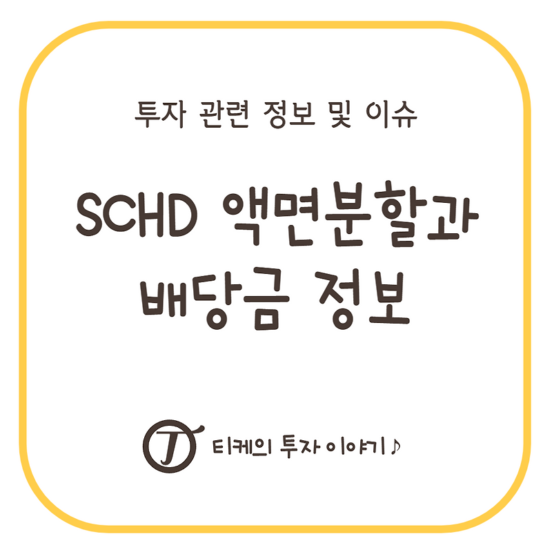 안녕하세요 로이스입니다. 미국 ETF인 SCHD가 주식분할을 한다는 소식입니다. 오늘 포스팅에서는 SCHD 주식분할에 대해 알아보겠습니다. 주식분할의 의미. SCHD 주식분할 일정 및 주식분할 후 주가. 자산운용사별 한국판 SCHD 비교.